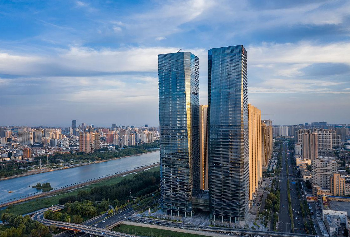 由 AECOM 作為方案方參與設計的太原中海國際中心歷時5年現已竣工,建筑面積約27萬平方米,共53層,高度230米。目前是 AECOM 在中國區設計落成的最高的雙子塔。項目集辦公、商業、餐飲等功能于一體,雙塔中軸線對稱布局,裙房底層架空形成與城市共享的開放空間,以挺拔的晶體切割雙塔結合立面優雅的曲線肌理,象征著“龍城”太原的雙龍飛翔,同時也寓意汾水波動,展現出山西悠久的歷史文化及自然資源特色,是太原市核心位置地標性、高品質、超高層寫字樓的代表。