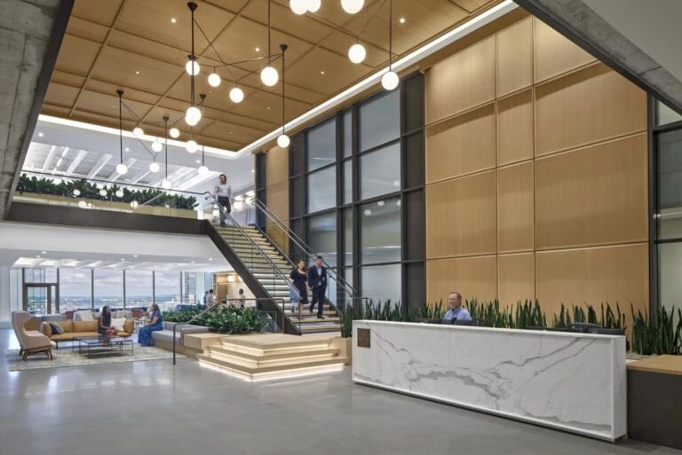 結合功能分區:核心筒周邊常設置公共空間(如接待區、休息區、會議室等),形成高效的人流組織流線。例如,部分項目在核心筒附近設置開放式茶水吧,分割和連接各功能空間,增強空間節奏感。
