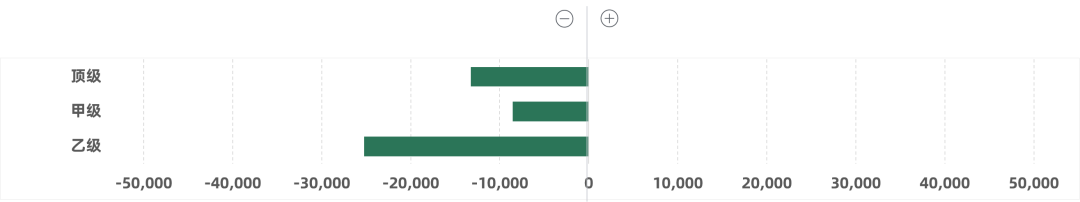 按樓宇等級成交面積(-/+)環比變化